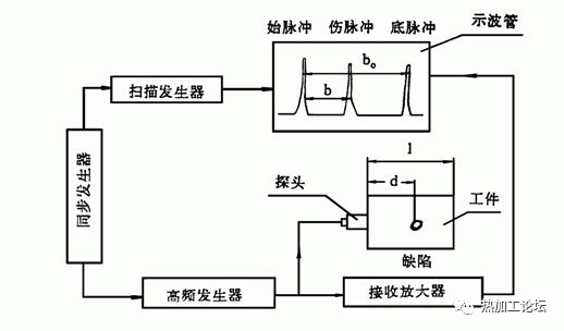 利用材料及其缺陷的声学性能差异对超声波传播的影响来检验材料内部缺陷的无损检验方法。现在广泛采用的是观测声脉冲在材料中反射情况的超声脉冲反射法,此外还有观测穿过材料后的入射声波振幅变化的穿透法等。常用的频率在0.5~5MHz之间。 常用的检验仪器为A型显示脉冲反射式超声波探伤仪。根据仪器示波屏上反射信号的有无、反射信号