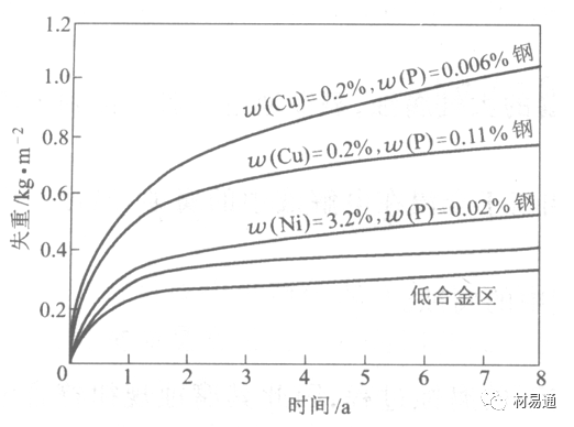 1)提高金属材料的耐蚀性 在碳钢中加入Cu、P、Cr、Ni及稀土元素可提高其耐大气腐蚀性能。例如,美国的Cor-Ten钢(Cu-P-Cr-Ni系低合金钢),其耐大气腐蚀性能为碳钢的4~8倍。