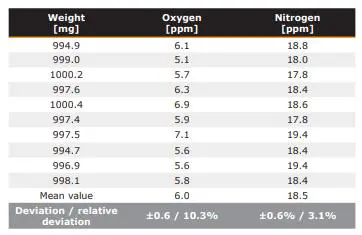 使用惰性气体熔融法分析钢铁样品,一台氧氮氢元素分析仪可以兼容小块状、削状、粉末状等各种形状的样品。分析时,只需要将样品重量导入仪器软件中,接着将样品投入到仪器进样口,通过仪器软件操作,样品会再仪器中进行自动分析并自动显示分析结果。